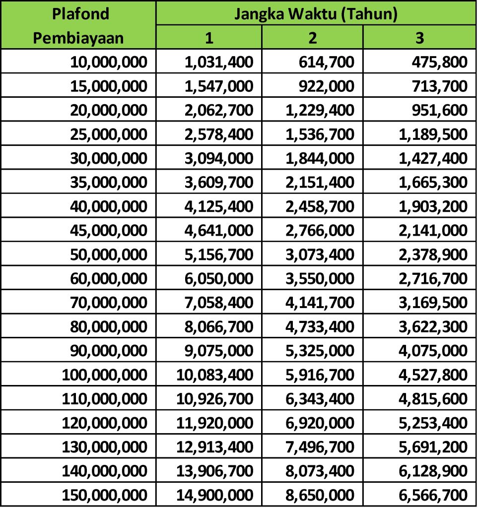 Simulasi Tabel Angsuran, setelah harga kendaraan dikurangi dengan DP.